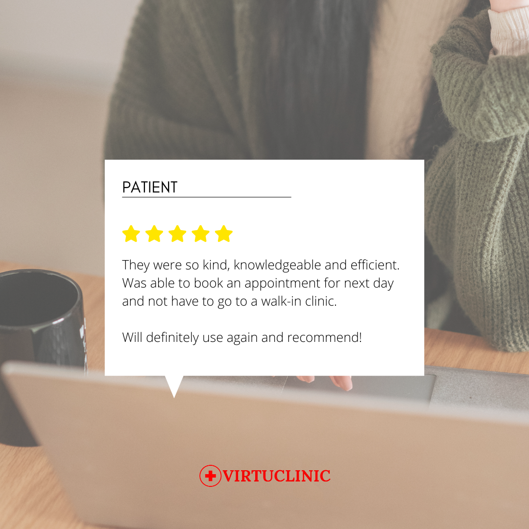 Welcome to VirtuClinic, your trusted health care team with over 85 years of combined team experience. Our online clinical team of Nurse Practitioners, Registered Nurses, and Mental Health Counsellors are dedicated to support your health and wellness. We save you an average time of 4.2 hours per appointment compared to seeing a physical clinic.